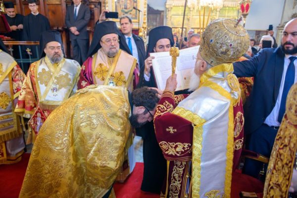 Ο Οικουμενικός Πατριάρχης Βαρθολομαίος ενώπιον της Ωραίας Πύλης ευλογεί τον τότε Αρχιμανδρίτη Δαμασκηνό λίγο πριν τις εις Επίσκοπο χειροτονία του.