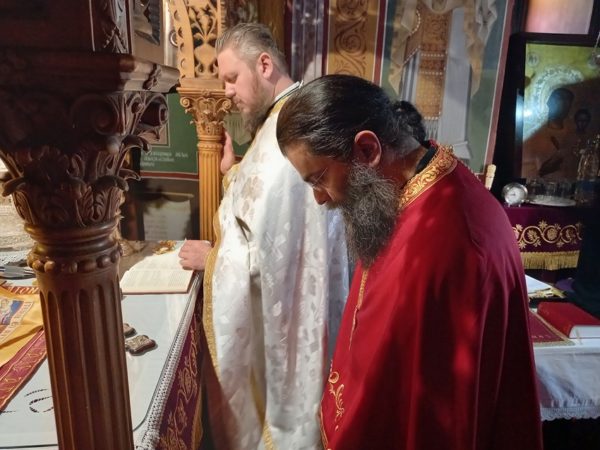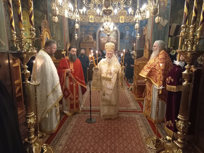 Στην Ιερά Μονή Παναγίας Φανερωμένης Χιλιομοδίου, όπου φυλάσσεται η Κάρα του Αγίου Σωφρονίου, Πατριάρχου Ιεροσολύμων και σύμφωνα με το ανακοινωθέν πρόγραμμά του για την Αγία και Μεγάλη Τεσσαρακοστή, λειτούργησε ο Σεβασμιώτατος Μητροπολίτης Κορίνθου κ. Διονύσιος το Σάββατο, 11 Μαρτίου 2023, πλαισιούμενος από τους Πανοσ. Αρχιμ. π. Εφραίμ Ιωάννου, από το Φιλοθεΐτικο κελλί Παναγούδας Αγίου Όρους, π. Άνθιμο Παπαλεξόπουλο, Ιεροκήρυκα της Ιεράς Μητροπόλεως, π. Αρκάδιο Ραζνύ και τον Αρχιδιάκονο π. Δαμασκηνό Γεννηματά.