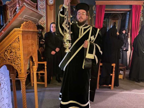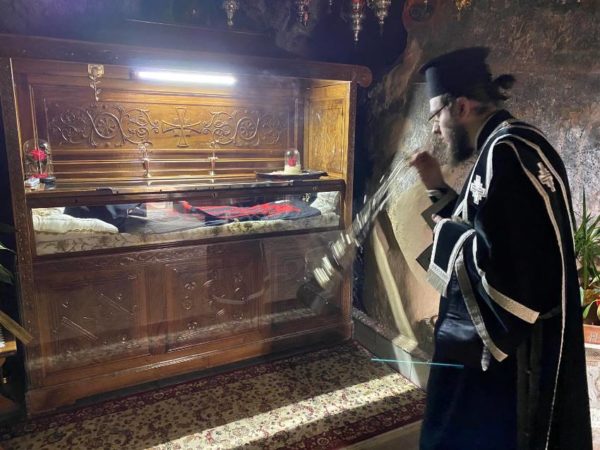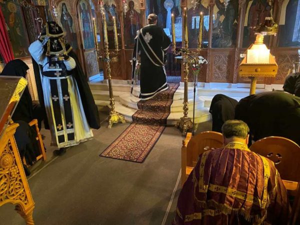 Στο Ιερό Βήμα παρέστη συμπροσευχόμενος ο Πανοσ. Καθηγούμενος της Ιεράς Μονής Μεγίστης Λαύρας του Αγίου Όρους Αρχιμανδρίτης π. Πρόδρομος, συνοδευόμενος από τον Λαυρεώτη Μοναχό Αγάθωνα, οι οποίοι φιλοξενούνται αυτές τις ημέρες στην Ιερά Μητρόπολη.