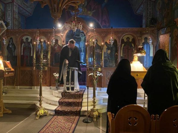Στην Ιερά Μονή του Οσίου Παταπίου μετέβη χθες το μεσημέρι ο Μητροπολίτης Κορίνθου κ. Διονύσιος, όπου και χοροστάτησε κατά την Προηγιασμένη Θεία Λειτουργία, την οποία τέλεσαν στο Καθολικό της Ιεράς Μονής, ο Αρχιμανδρίτης π. Αρκάδιος Ραζνύ, Εφημέριος του Ιερού Ναού Μεταμορφώσεως του Σωτήρος Κορίνθου και ο Διάκονος π. Χρήστος Χίλιας.