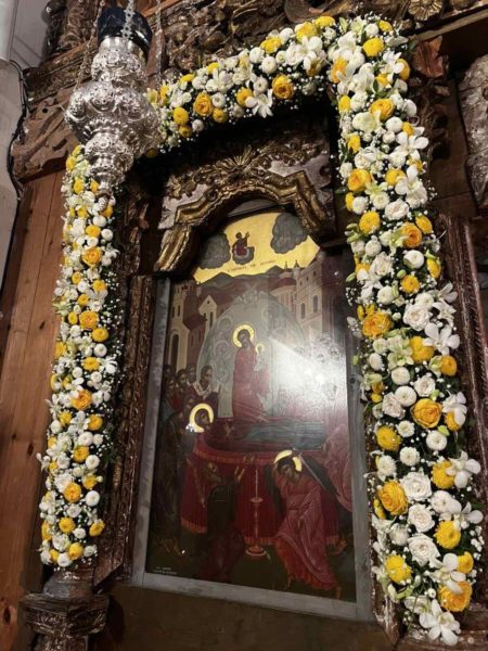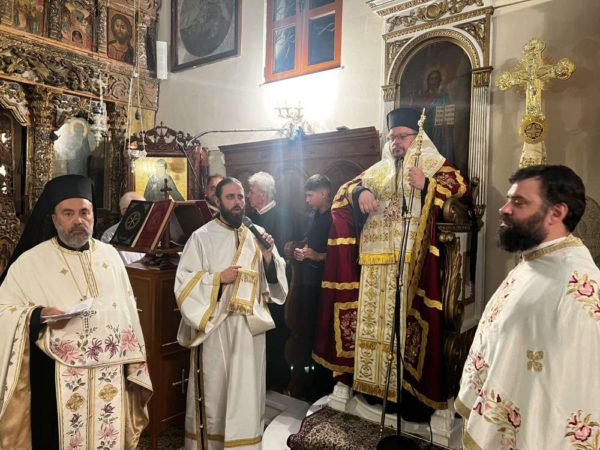 Ο Σεβασμιώτατος χοροστάτησε στον Εσπερινό, στον οποίον έψαλλαν καλλικέλαδοι ψάλτες Βυζαντινού ύφους προσκεκλημένοι του οικείου Μητροπολίτου, ενώ στο κήρυγμά του ανέλυσε την προφητεία του Ησαΐα περί της Υπεραγίας Θεοτόκου.