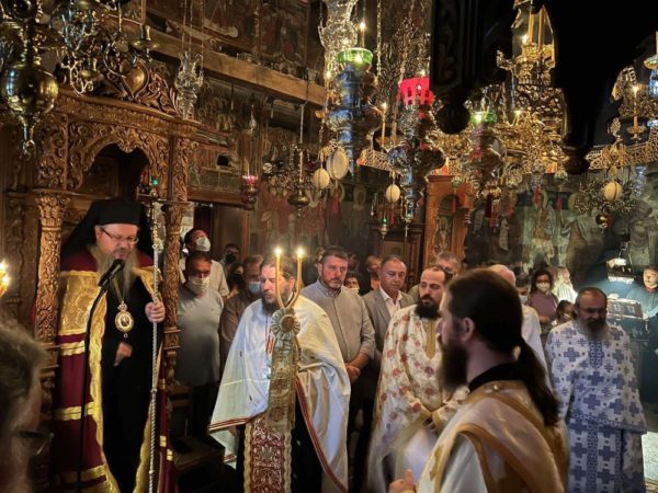 Προ της απολύσεως, ο π. Νικόδημος προσεφώνησε καταλλήλως τον Σεβασμιώτατο και τον ευχαρίστησε που λάμπρυνε με την παρουσία του την πανήγυρη της Μονής, ενώ με τη σειρά του ο Επίσκοπος μας ευχαρίστησε τόσο τον οικείο Μητροπολίτη κ. Ιγνάτιο για την πρόσκληση να συμμετάσχει στις θρησκευτικές εκδηλώσεις της γειτονικής Ιεράς Μονής, όσο και τον Καθηγούμενο για την αβραμιαία φιλοξενία, ενώ απευθυνόμενους στους πιστούς που κατέκλυσαν το Μοναστήρι, μεταξύ αυτών ο Βουλευτής κ. Χρήστος Κέλλας, ο Δήμαρχος Αγιάς κ. Αντώνιος Γκουντάρας, η Προϊσταμένη της Εφορίας Αρχαιοτήτων κα Σταυρούλα Σδρόλια, τους ευχήθηκε να έχουν την ευλογία του ιαματικού Αγίου στη ζωή τους.