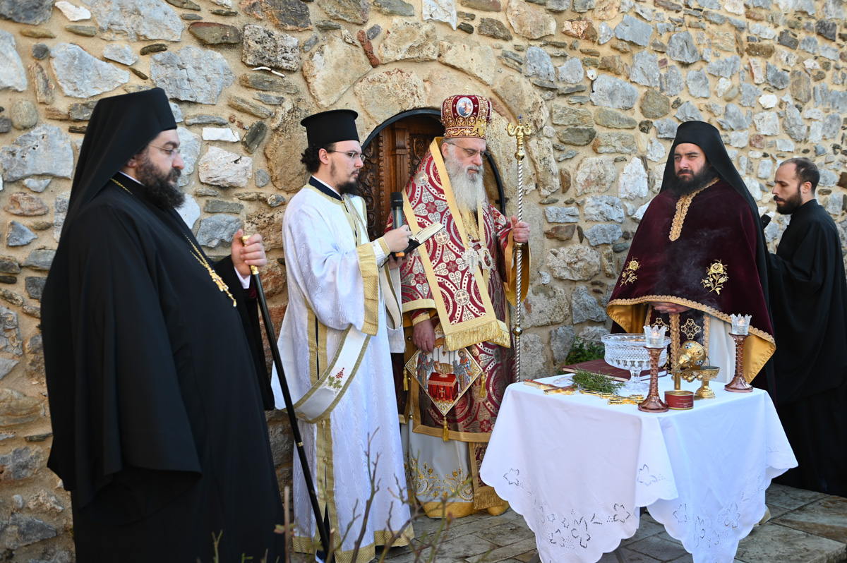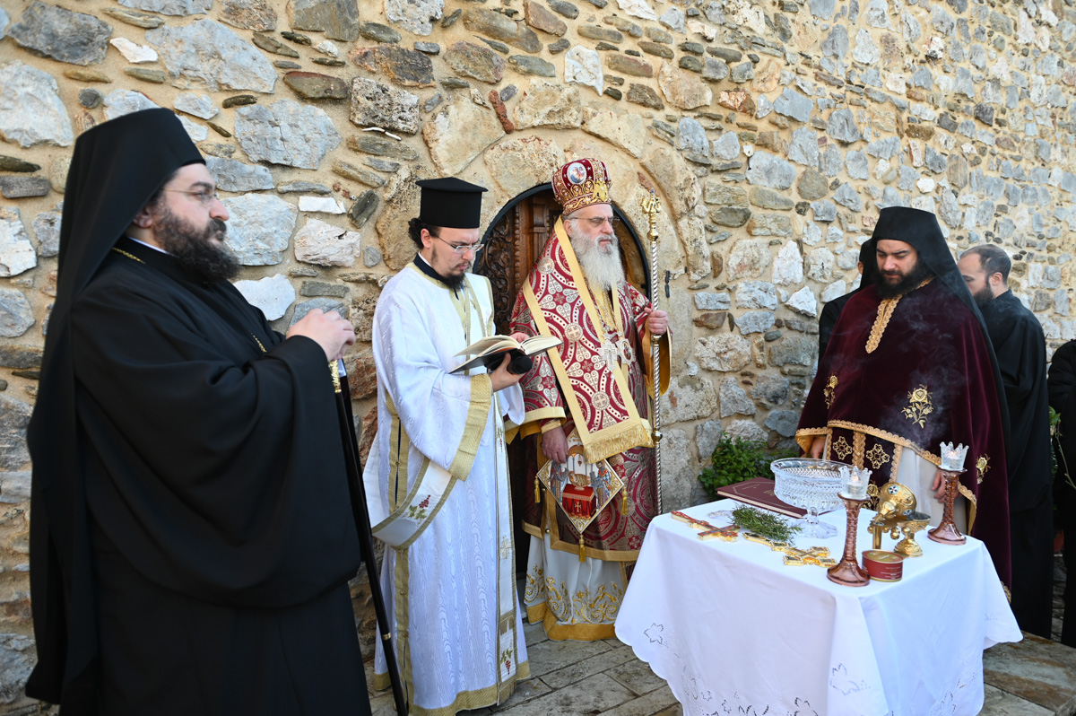 Μετά την Θεία Λειτουργία τέλεσε τον Αγιασμό για την έναρξη των εργασιών ανακαίνισης παλαιάς πτέρυγας της Ιεράς Μονής.