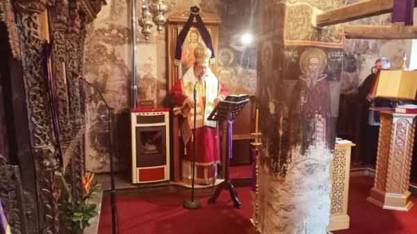Τον Σεβασμιώτατο πλαισίωσαν ο εφημέριος της Μονής και Αρχιερατικός Επίτροπος Αλαγονίας Πρωτοπρεσβύτερος Ιωάννης Παρθένιος και ο Διάκονος Θεόφιλος Κυριάκος.