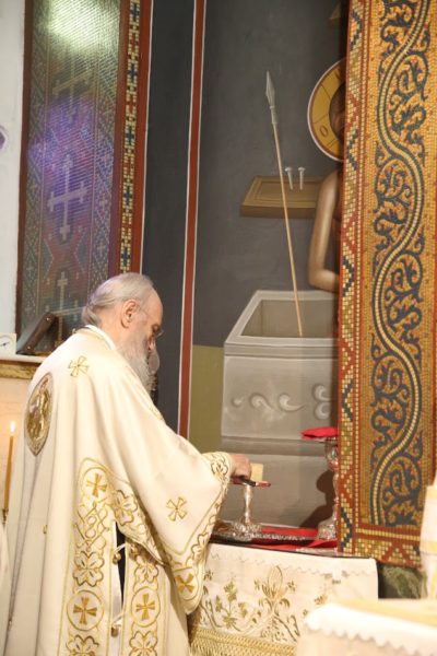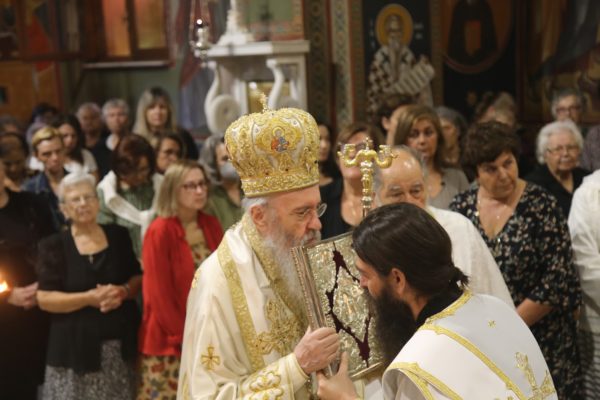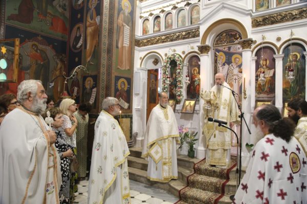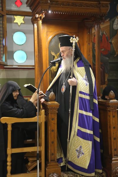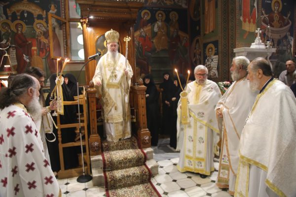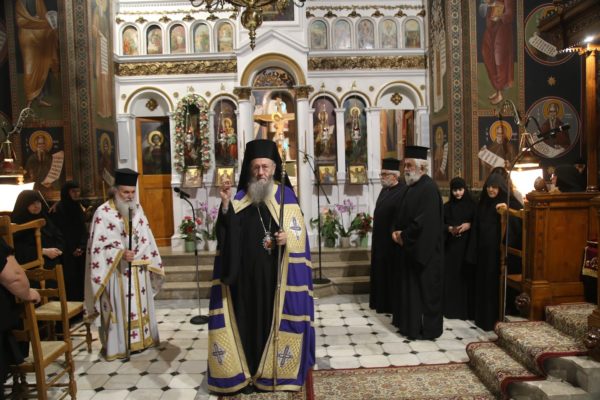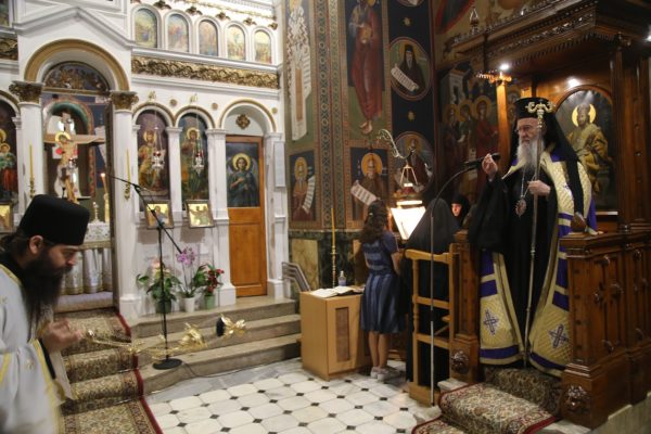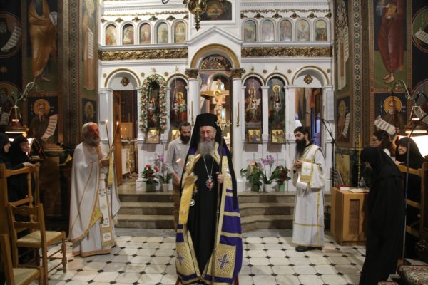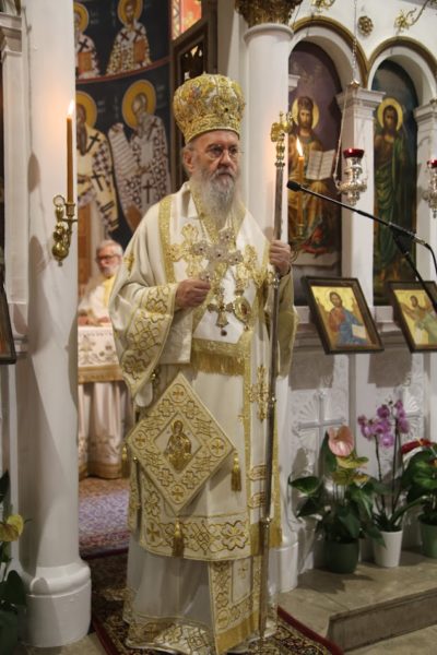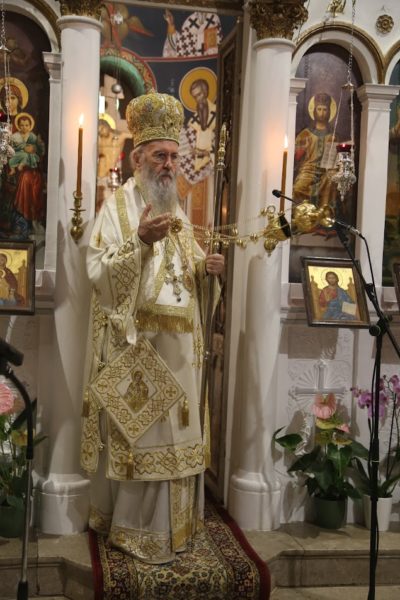 Την παραμονή της εορτής χοροστάτησε στον πανηγυρικό αναστάσιμο Εσπερινό πλαισιούμενος από Ιερείς της περιοχής.