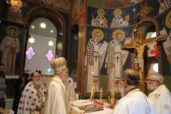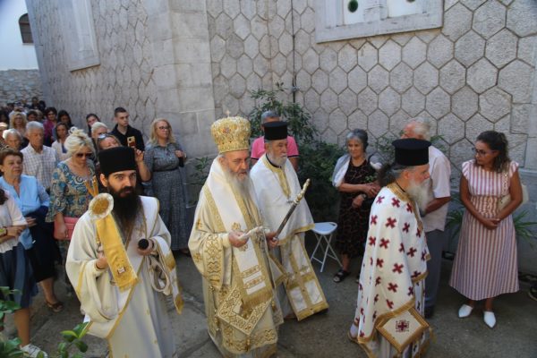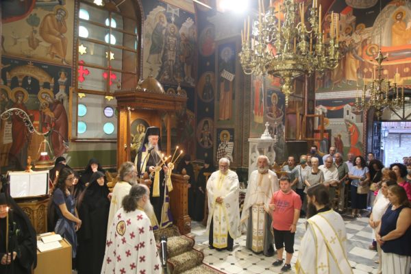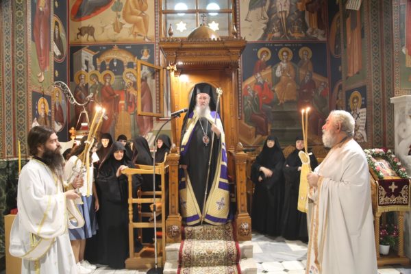 Ανήμερα της Εορτής χοροστάτησε στον Όρθρο και τέλεσε την θεία Λειτουργία στο Καθολικό της Ιεράς Μονής. Με τον Σεβασμιώτατο συλλειτούργησαν Ιερείς από τα γύρω χωριά καθώς και Ιερείς προσκυνητές από άλλες Μητροπόλεις.