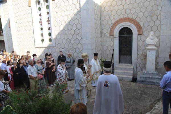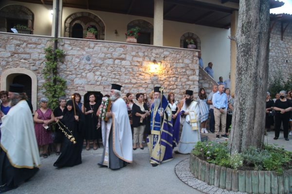 Προ του «δι’ ευχών», τελέσθηκε σύντομη λιτανεία πέριξ του Καθολικού, δέηση υπέρ των κεκοιμημένων στην Ιερά Μονή και στην συνέχεια Αρτοκλασία στο προαύλιο της Μονής.