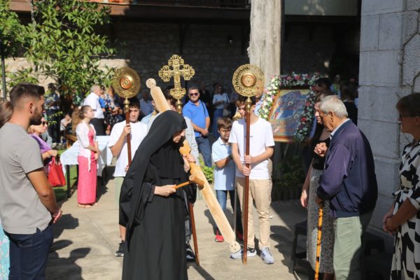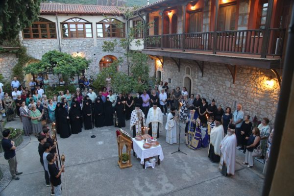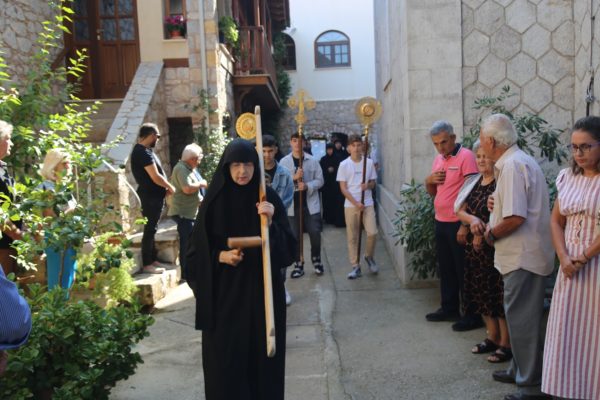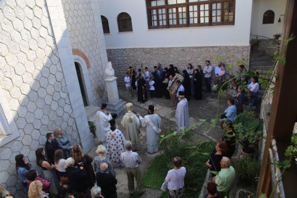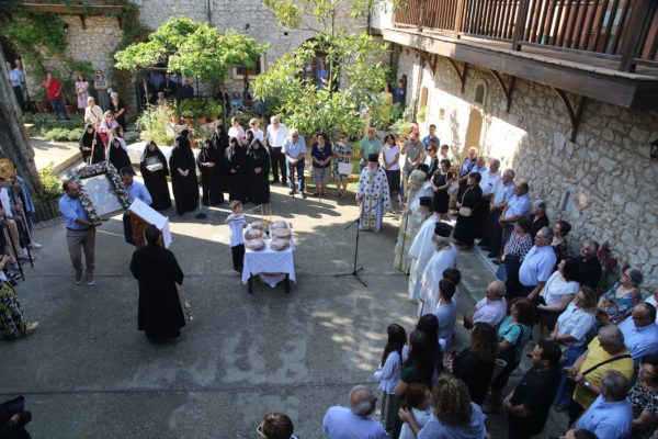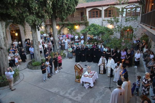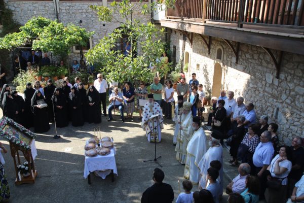 Προ της απολύσεως του Εσπερινού τελέσθηκε Αρτοκλασία στον αύλειο χώρο της Μονής και ακολούθησε κήρυγμα.