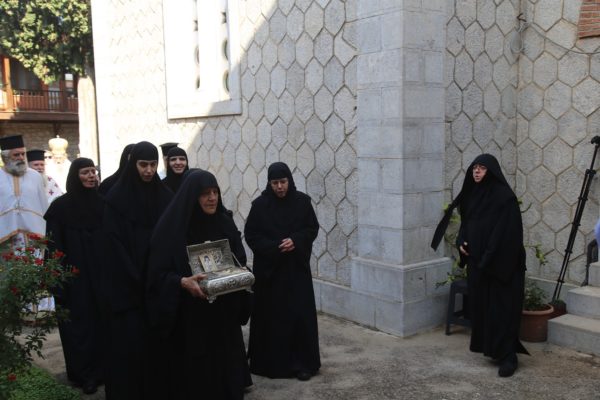 Μετά το πέρας της θείας Λειτουργίας η Γέροντισσα Σιλουανή και οι αδελφές προσέφεραν πλούσιο κέρασμα στους επισήμους και τους πολλούς προσκυνητές του Μοναστηριού.