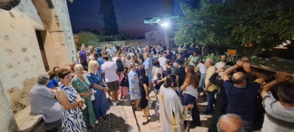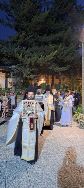 Στο τέλος της Εσπερινής ακολουθίας λιτανεύθηκε η ιερά εικόνα και απότμημα των ιερών λειψάνων του Αγίου Παντελεήμονα, γύρω από τον πανηγυρίζοντα Ιερό Ναό, με τη συμμετοχή εκατοντάδων πιστών.