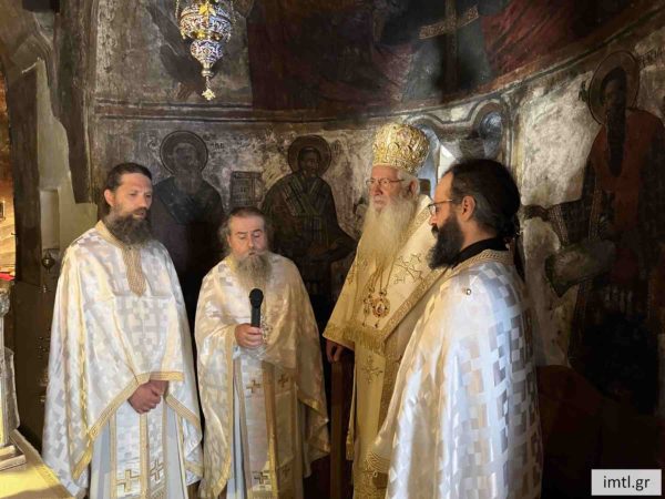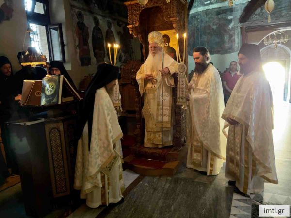 Ο Σεβασμιώτατος τέλεσε την Θεία Λειτουργία στο Καθολικό της ιστορικής Ιεράς Μονής πλαισιούμενος από τον Καθηγούμενο πανοσ. αρχ. π. Θεοδόσιο Δαμόπουλο, τους μοναχούς της Μονής και πολλούς πιστούς.