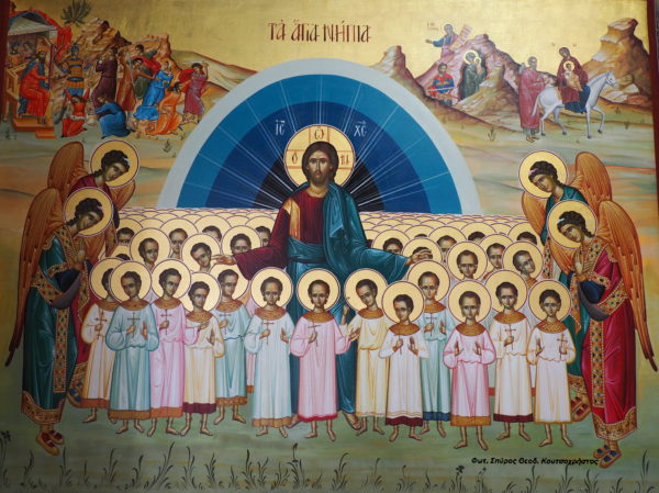 Στην προσλαλιά του, ο Πρωτοσύγκελλος της Ιεράς Μητροπόλεως Γόρτυνος και Μεγαλοπόλεως Αρχιμανδρίτης π. Ιάκωβος Κανάκης, ανέφερε μεταξύ άλλων ” …πως την σφαγή των Νηπίων την είχαν προφητεύσει οι Προφήτες της Παλαιάς Διαθήκης ” και κατέληξε “…ότι τα Άγια Νήπια βαφτίστηκαν με το αίμα τους! “.