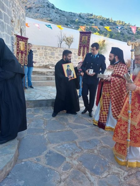 Ο Σεβασμιώτατος κήρυξε χθες τον Θείο Λόγο και ευχήθηκε πατρικά στην Καθηγουμένη και στον Διοικητή του Α.Τ Ύδρας για την εορτή του Προστάτη της Ελληνικής Αστυνομίας Αγίου Αρτεμίου.