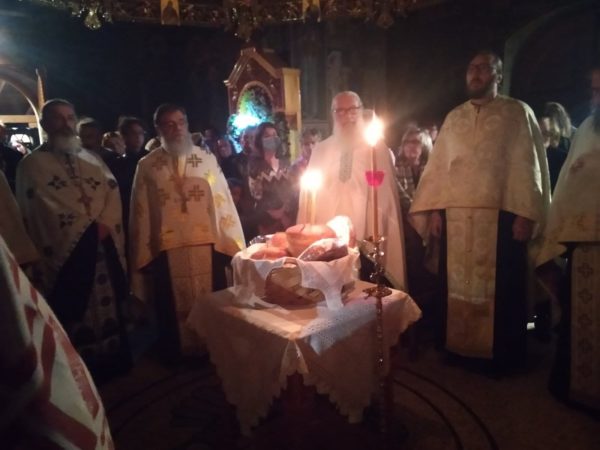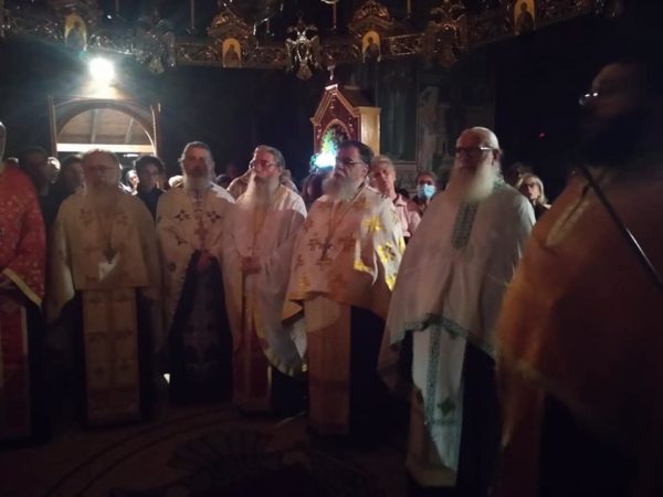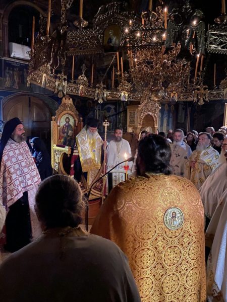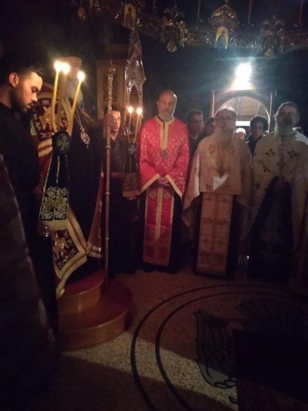 Πολλοί προσκυνητές προσήλθαν στην Ιερά Μονή ενώ μετά το πέρας του Μέγα Αρχιερατικού Εσπερινού η Αδελφότητα προσέφερε κέρασμα στο Αρχονταρίκι.