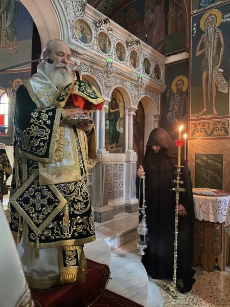 Το πρωί του Σαββάτου 11 Νοεμβρίου 2023, ο Σεβασμιώτατος ιερούργησε στην προαναφερόμενη εορτάζουσα Ιερά Μονή.