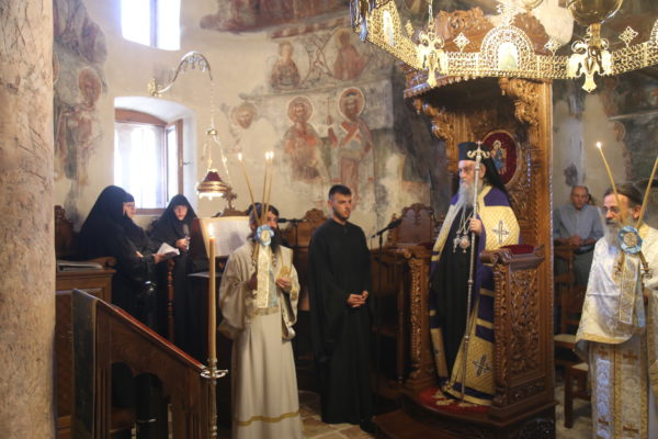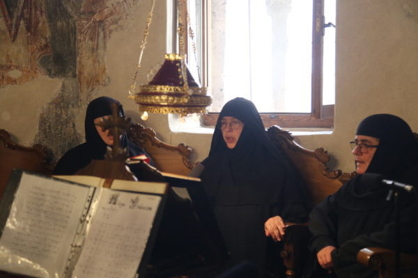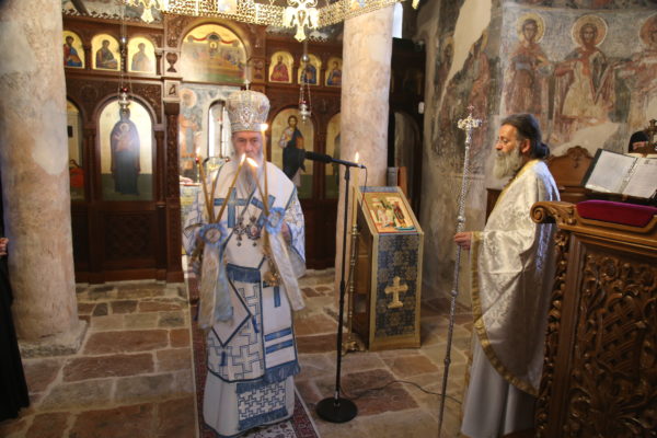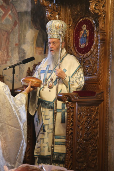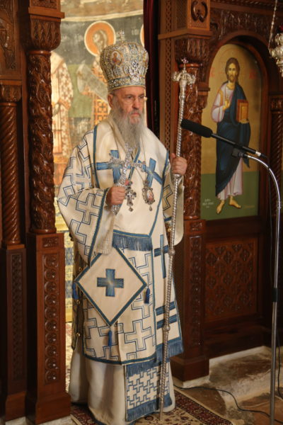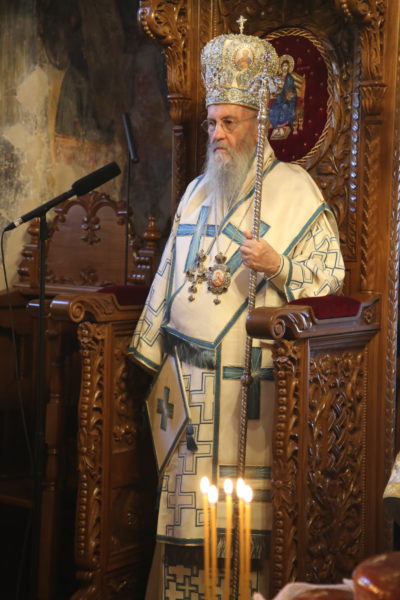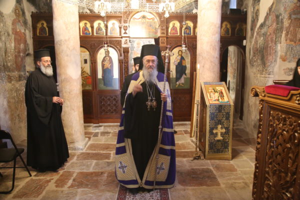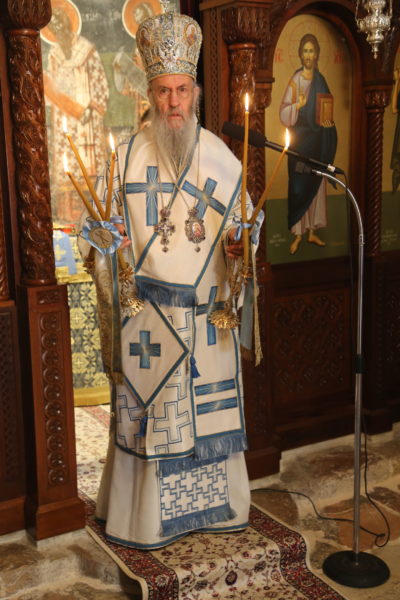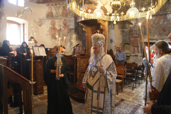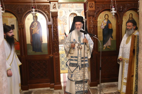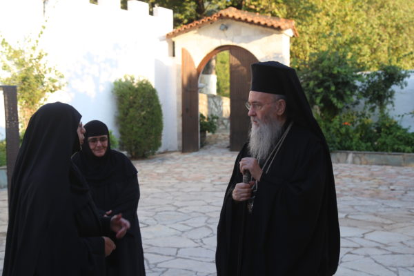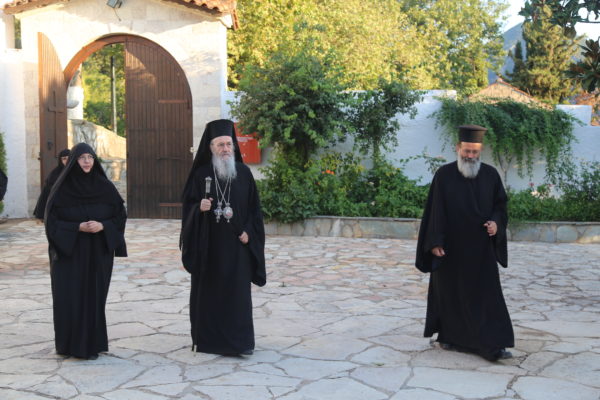 Πριν το τέλος της θείας Λειτουργίας ο Σεβασμιώτατος ευχήθηκε στην Γερόντισσα της Ιεράς Μονής, μοναχή Ειρήνη, για την ονομαστική της εορτή, να έχει υγεία σωματική και πνευματική για να ζει τον υγιή μοναχισμό, σύμφωνα με την Εκκλησιαστική παράδοση, όπως και τον ακολουθεί με την εν Χριστώ συνοδεία της.