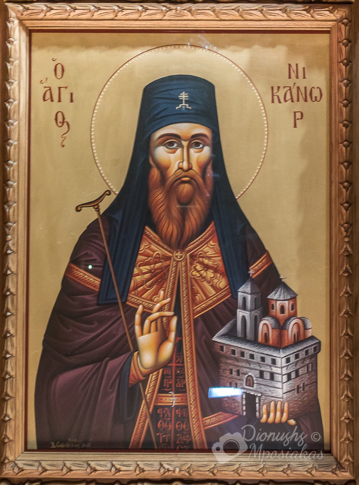 Μία νύχτα κατά τη διάρκεια προσευχής του άκουσε φωνή, σύμφωνα με τις διηγήσεις της φυλλάδας του Οσίου, η οποία έλεγε: «Νικάνωρ, ανάβηθι ταχέως εις την κορυφήν του όρους και έκει θέλεις εύρει την εικόνα μου εν τη γη κεκρυμμένην, και κτίσον εκκλησία εκεί εις το εμόν όνομα, και κελλία ότι λαόν θέλεις μου ποιμάνει περιούσιον».