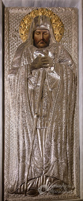 - Τα Ιερά Λείψανα του Αγίου τοποθετημένα εις αργυρές θήκες οι οποίες φέρουν ανάγλυφες παραστάσεις Αγίων