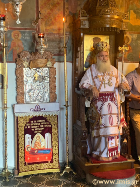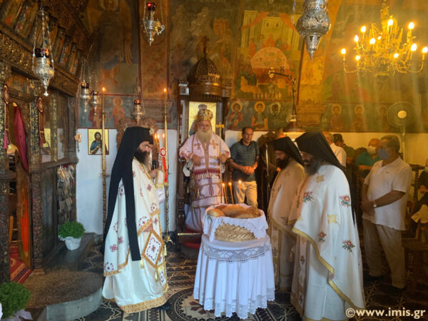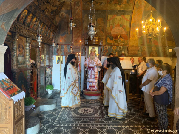 Στην Ιερά Μονή Παναγίας Φανερωμένης στην Ιεράπετρα, την Κυριακή 23 Αυγούστου 2020, Απόδοση της εορτής της Κοιμήσεως της Θεοτόκου, ο Σεβασμιώτατος Μητροπολίτης Ιεραπύτνης και Σητείας κ. Kύριλλος χοροστάτησε κατά την Ακολουθία του Όρθρου και στη συνέχεια ιερούργησε, κήρυξε τον θείο λόγο και τέλεσε ιερό μνημόσυνο (συναπαντήματα) υπέρ αναπαύσεως της ψυχής του μακαριστού Ευαγγέλου Δερμιτζάκη, κατά σάρκα πατρός του Ηγουμένου της Ι. Μονής Πανοσιολ. Αρχιμ. Παϊσίου Δερμιτζάκη.
