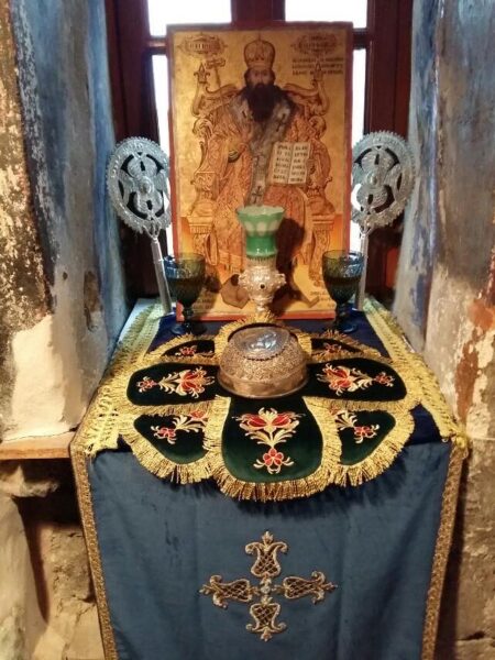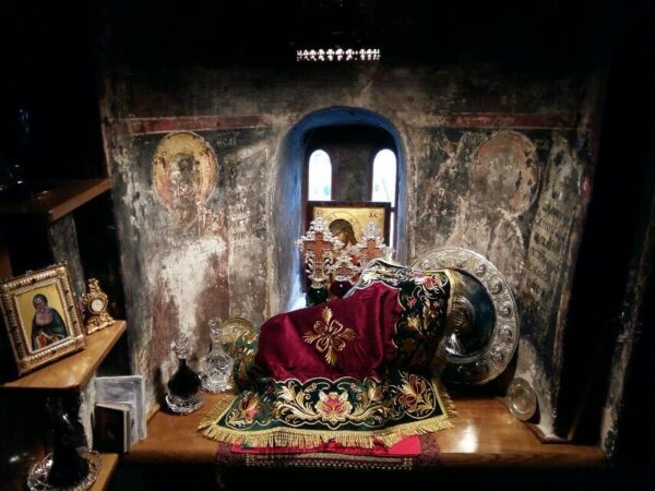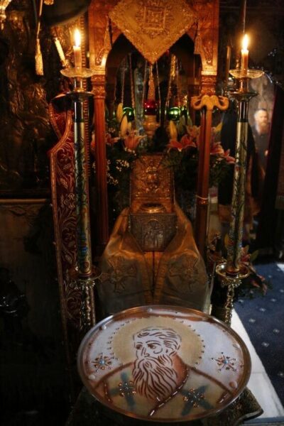 Ὁ μοναχὸς δέχτηκε. Πήγαμε στὸ δωμάτιο τοῦ πατέρα, ὁ ὁποῖος μὲ δυσκολία ἀπὸ τὴν μακρόχρονη ἀσθένεια προσκύνησε τὴν Ἁγία Κάρα. Ὁ μοναχὸς διάβασε μία εὐχὴ καὶ ὅλοι μαζὶ προσευχηθήκαμε καὶ παρακαλέσαμε γιὰ τὴν ἀποκατάσταση τῆς ὑγείας τοῦ πατέρα μας.
