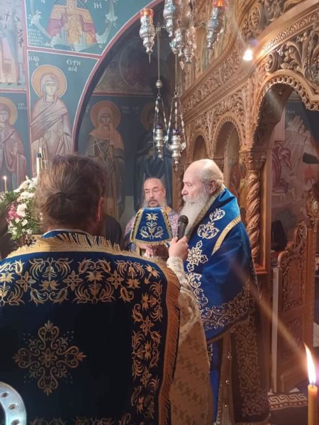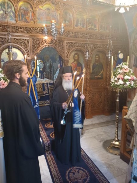 Στο τέλος ο Σεβασμιώτατος τέλεσε Τρισάγιο για τους Ήρωες του έπους του 1940 και ευχαρίστησε την Καθηγουμένη Νεκταρία μοναχή για την φροντίδα της στην Ιερά Μονή. Ακολούθησε εόρτιο κέρασμα.