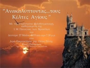 Οι Κέλτες Άγιοι στο Ιερό Παρεκκλήσιο της Οσίας Ξένης Κάτω Πατησίων μεσα από τα σχέδια και τις αγιογραφίες της γερόντισσας Φιλοθέης μοναχής.