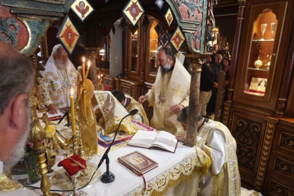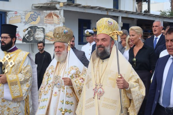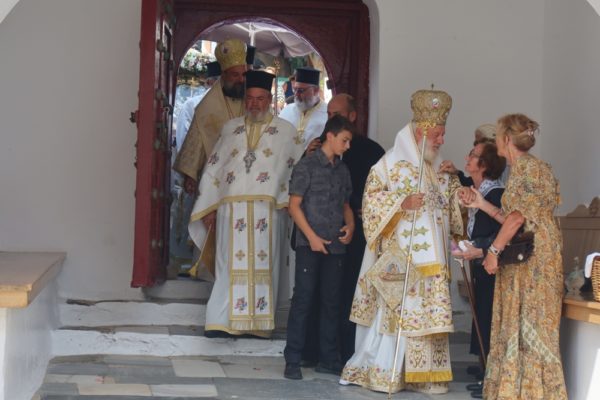 Στην Δισαρχιερατική Θεία Λειτουργία που τελέσθηκε, προεξήρχε ο Σεβασμιώτατος Μητροπολίτης Θήρας, Αμοργού και Νήσων κ. Αμφιλόχιος, σ υνιερουργούντος του Σεβασμιωτάτου Μητροπολίτη Σύρου, Τήνου, Άνδρου, Κέας και Μήλου κ. Δωροθέου Β΄ με τη συνευχητική συμμετοχή του Ηγουμένου της Μονής, Πανοσιολογιωτάτου Αρχιμ. Αλεξίου Παπαδόπουλου, Εφημερίων της νήσου, εξ Αθηνών, Ερμουπόλεως και Άνδρου, και με την παρουσία των Βουλευτών Κυκλάδων κας Αικατ. Μονογυιού και κ.κ. Ιω Βρούτση και Φιλ. Φόρτωμα, του Αντιπεριφερειάρχη Πολιτισμού κ. Στυλ. Πρίγκου, του Δημάρχου Μυκόνου κ. Κωνστ. Κουκά, Αντιδημάρχων και Δημοτικών Συμβούλων, του Υπολιμενάρχου Μυκόνου, του Διοικητού της Αεροπορικής Βάσης Μυκόνου, των Διευθυντών της Πυροσβεστικής Υπηρεσίας και της Ελληνικής Αστυνομίας, του Προέδρου της Τοπικής Κοινότητος Άνω Μεράς και της Προέδρου της Αδελφότητας Ανωμεριτών Μυκόνου.
