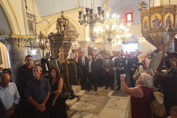 Μετά το πέρας της Θείας Λειτουργίας, ακολούθησε λαμπρή Λιτανεία της Ιεράς Εικόνος της Παναγίας Τουρλιανής μέχρι το Ηρώο των πεσόντων όπου ανεπέμφθη Δέηση.