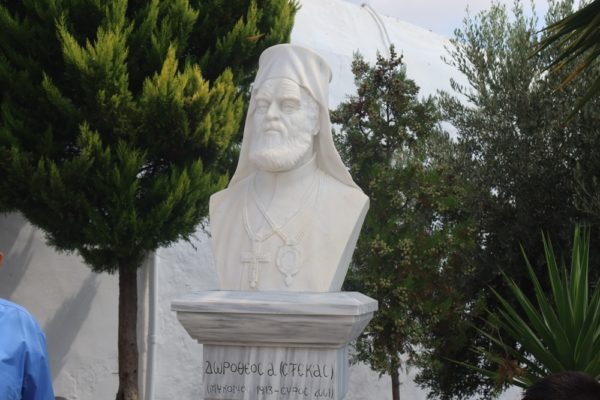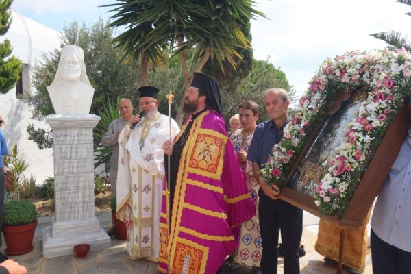 Κατά την επιστροφή, ετελέσθη επιμνημόσυνη δέηση στην προτομή του αοιδίμου Μητροπολίτου Σύρου και Μυκόνου Δωροθέου Α’ , του Μυκονίου, που έχει ανεγερθεί στο προ της Μονής κηπάριο.