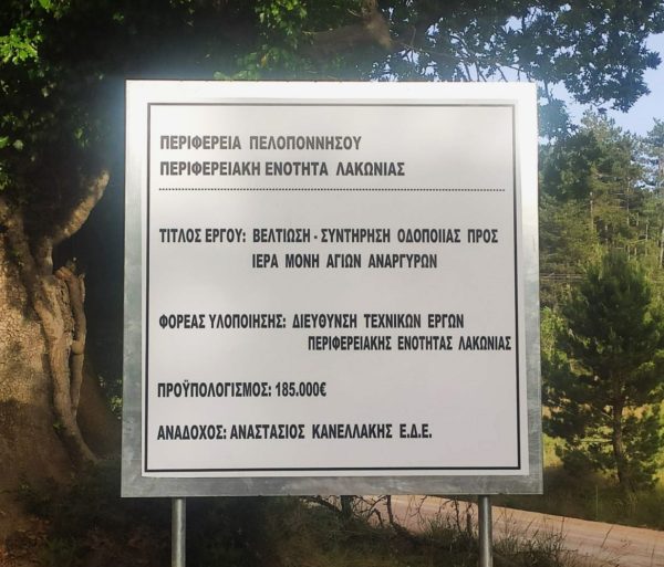Προς ολοκλήρωση βαίνει το έργο της Περιφέρειας Πελοποννήσου, για την βελτίωση και συντήρηση της οδοποιίας προς την ιστορική Ιερά Μονή Αγίων Αναργύρων Πάρνωνα, προϋπολογισμού 185.000 €.