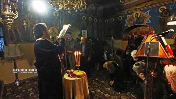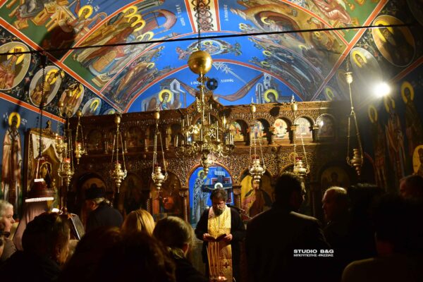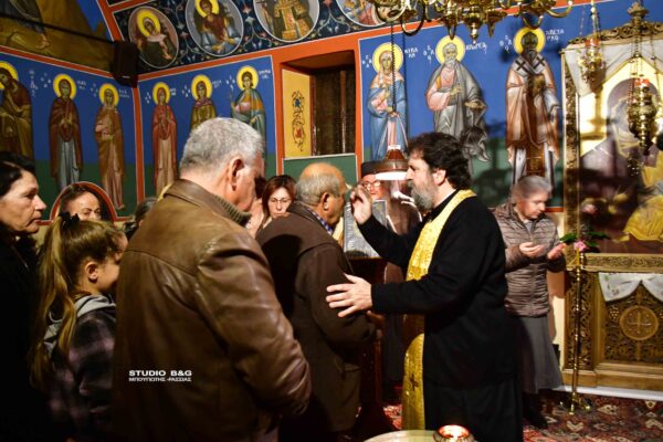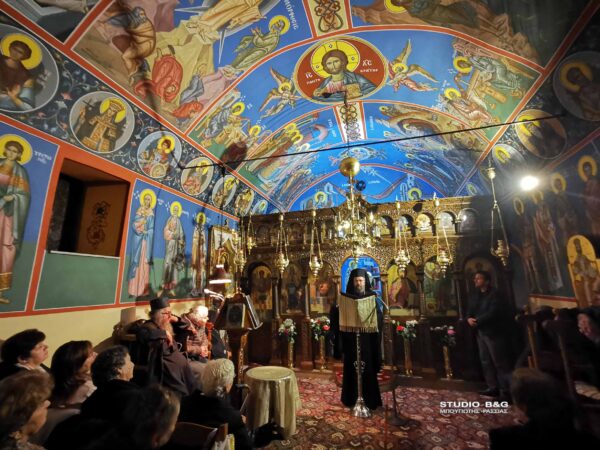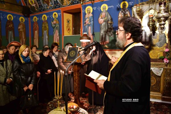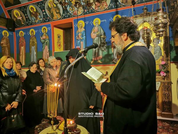 Προηγήθηκε το Ιερό Μυστήριο του Ευχελαίου από τον Ιεροκήρυκα της Μητροπόλεως Αργολίδος κι εφημέριο του Μοναστηριού π. Χρυσόστομο Μιχαλόπουλο κι άλλους Ιερείς της περιοχής .