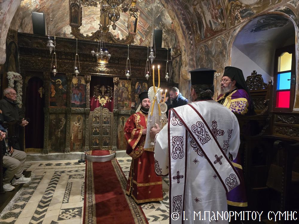 Στην παλαίφατη Ιερά Μονή του Μεγάλου Σωτήρος, Μετοχίου της Κυριάρχου Ι. Μονής του Ταξιάρχου Μιχαήλ του Πανορμίτου, εχθές Σάββατο 17η Ιανουαρίου 2026, εορτή του Οσίου πατρός ημών Αντωνίου του Μεγάλου, συμπροσευχομένου του Σεβ. Ποιμενάρχου, Μητροπολίτου Σύμης κ. Χρυσοστόμου, ο άγων τα ονομαστήριά του Θεοφιλ. Καθηγούμενος της Μονής του Πανορμίτου, Επίσκοπος Ροδοστόλου κ. Αντώνιος, χοροστάτησε του Όρθρου, ευλόγησε την Αρτοκλασία και τα Κόλλυβα του Αγίου και ιερούργησε την αναίμακτον Θεία Λατρεία.