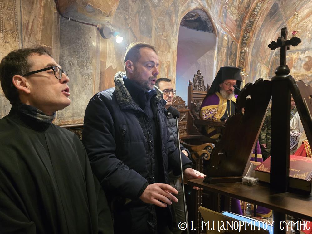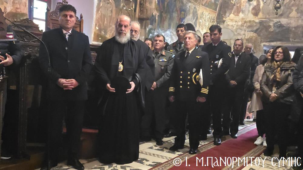 Μεταξύ του πολυπληθούς εκκλησιάσματος, παρέστησαν ο Δήμαρχος Σύμης, κ. Ελευθέριος Παπακαλοδούκας, ο μέχρι τούδε Διοικητής Δ.Α.Ν. της Σύμης κ. Χαράλαμπος Κατηφόρης, άρτι προαχθείς εις Ταξίαρχον, ο Διοικητής του 549 Τ.Ε. Σύμης Ανχης κ. Ευάγγελος Καρσιώτης, ο Λιμενάρχης Σύμης κ. Σταύρος Μακρής, ως και εκπρόσωποι των λοιπών τοπικών Αρχών, Φορέων και Συλλόγων. Τέλος προσεφέρθησαν εις όλους καφές, εόρτια κεράσματα και εν συνεχεία παρετέθη εις τους ανακαινισθέντας φιλοξένους χώρους της Μονής εόρτιος Τράπεζα αγάπης.