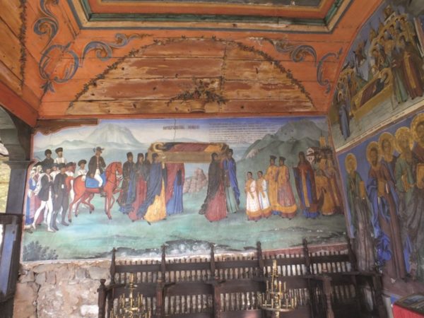 «Μετά, αφού αναχώρησαν από εκεί, ήρθαν στο μοναστηριακό μετόχι, ονομαζόμενο Ορλίτσα και στην εκκλησία Αγίων Αποστόλων, την οποία ο ίδιος ηγούμενος του μοναστηριού Νταβίντ ανήγειρε εκ θεμελίων σ’ αυτόν τον τόπο, έθεσαν το τίμιο φέρετρο του αξιοσέβαστου, επειδή την επόμενη ημέρα ήταν η γιορτή των Πρωτοκορυφαίων Αποστόλων Πέτρου και Παύλου. Και γιόρτασαν με το λαό, τίμησαν την ημέρα και απέδωσαν έπαινο ευγνωμοσύνης προς τον Θεό. Αφού αναχώρησαν, την άλλη ημέρα, η οποία ήταν 30η Ιουνίου, ξανά ο ηγούμενος με τους ιερείς και τον επίσκοπο του Κρούπνικ κ. Ιωσήφ, ο οποίος ήταν δικός του αδερφός εξ αίματος, πήρε το φέρετρο και το περιέφερνε, ενώ ο λαός ακολουθούσε με τα πόδια και φώναζε «Κύριε ελέησον», μέχρι την γέφυρα του μετοχίο». Μερικά χρόνια αργότερα ένα μέρος του ναού ζωγραφίστηκε, ενώ η τελική του διακόσμηση ολοκληρώθηκε κατά το έτος 1491 με χρήματα του επισκόπου του Κρούπνικ – Ιάκοβ, στα χρόνια του γνωστού ηγουμένου της Ρίλας Θεόκτιστου. Η καινούρια εικονογράφηση της εκκλησίας είναι έργο του Νικόλα Ομπραζοπίσοβ από την πόλη Σάμοκοβ και χρονολογείται από το έτος 1863. Η θριαμβευτική σύνθεση του ίδιου «Επιστροφή των λειψάνων του Αγίου Ιωάννη της Ρίλας του Θαυματουργού» βρίσκεται στο νάρθηκα του ναού. Οι τοιχογραφίες από τον 15ο αιώνα διατηρήθηκαν στο Ιερό Βήμα και πάνω από την πόρτα στο ναό της εκκλησίας.