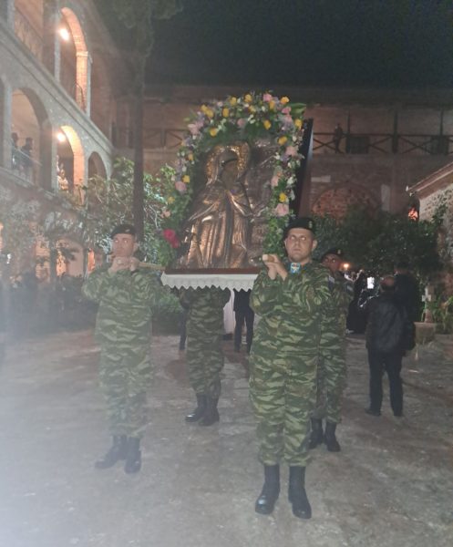 Προ της απολύσεως της ιεράς Ακολουθίας, πραγματοποιήθηκε η λιτάνευση της περιπύστου εικόνος και της θαυματοβρύτου κάρας του προστάτου και εφόρου της αρχαγγελικής μάνδρας, Αγ. Ιγνατίου, παρουσία πλήθους ευλαβών πιστών, των Αρχών του τόπου, της Στρατιωτικής ηγεσίας και εκπροσώπων των Σωμάτων ασφαλείας.