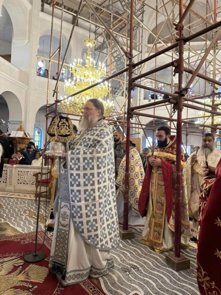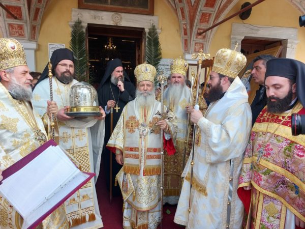 Η πολυαρχιερατική Θεία Λειτουργία τελέστηκε προεξάρχοντος και ομιλούντος του Μητροπολίτη Νέας Κρήνης και Καλαμαριάς κ. Ιουστίνου. Συλλειτούργησαν ο Σεβασμιώτατος Μητροπολίτης Γόρτυνος και Μεγαλοπόλεως κ. Νικηφόρος, ο Θεοφιλέστατος Επίσκοπος Έγρας (Πατριαρχείου Σερβίας) κ. Νεκτάριος και ο Σεβασμιώτατος Ποιμενάρχης, Μητροπολίτης Ύδρας, Σπετσών και Αιγίνης κ. Εφραίμ ο οποίος ευχαρίστησε με θερμά λόγια τους Αρχιερείς, την Υφυπουργό Παιδείας, Θρησκευμστων και Αθλητισμού κ. Δόμνα Μιχαηλίδου, τους Ιερείς, τη Καθηγουμένη μοναχή Τιμοθέη, την χορωδία, τις αρχές, τα Σχολεία και όλους όσους συμμετείχαν.