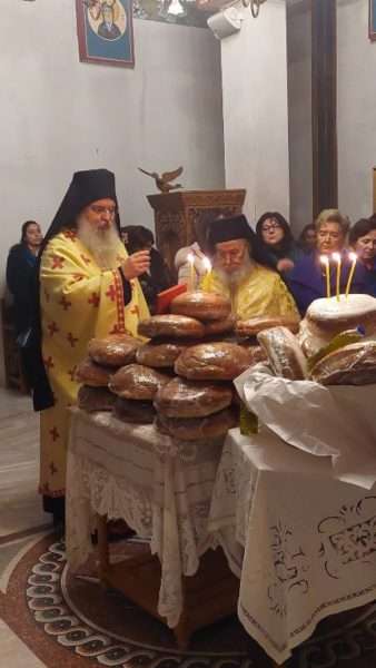 Το πρωί της εορτής τον Όρθρο και την Θ. Λειτουργία τέλεσε, με την ευλογία του Σεβασμιωτάτου Ποιμενάρχου κ. Διονυσίου, ο Θεοφιλέστατος Επίσκοπος Κεγχρεών και Πρωτοσύγκελλος της Ι. Μητροπόλεως κ. Αγάπιος μετά του οποίου συλλειτούργησαν ο Αρχιμ. π. Άνθιμος Παπαλεξόπουλος, ο Ιερομόναχος π. Παντελεήμων Λιλιόπουλος, ο Πρεσβύτερος π. Νικόλαος Νομικός και ο Αρχιδιάκονος της Ι. Μητροπόλεως π. Χρήστος Χίλιας.