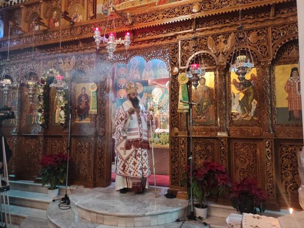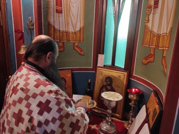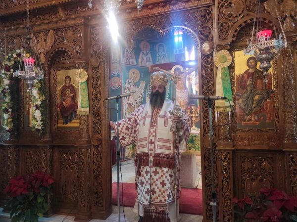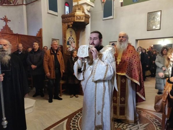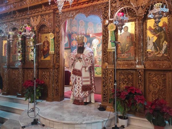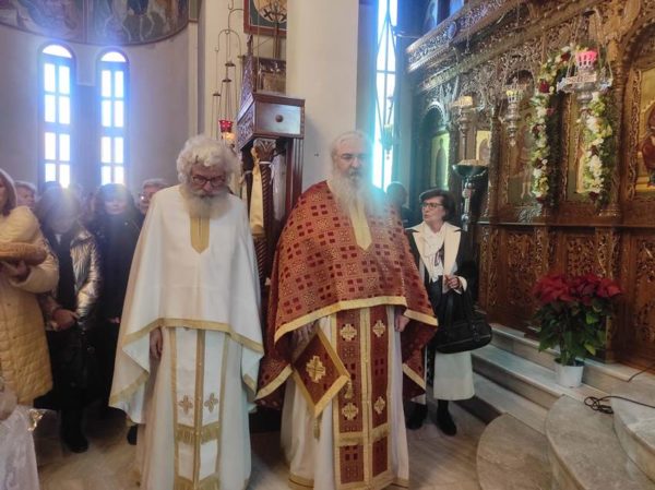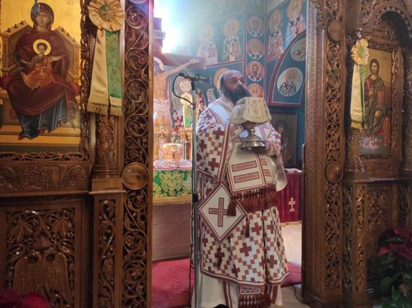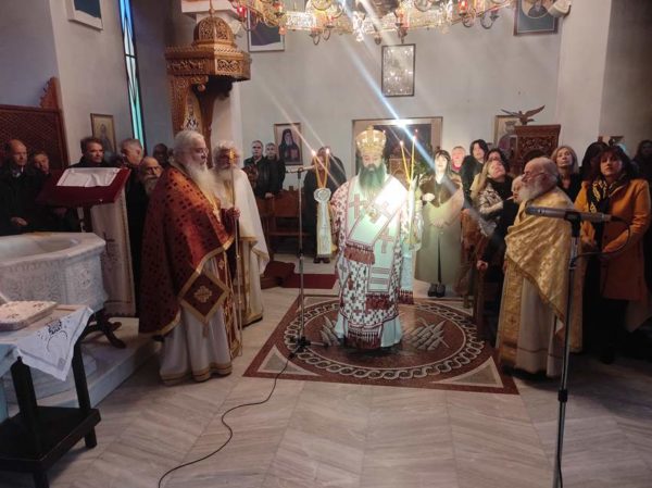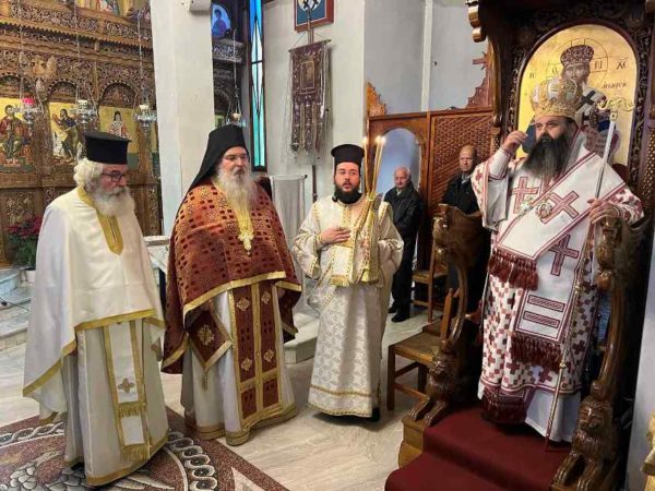 Το πρωί της εορτής τον Όρθρο και την Θ. Λειτουργία τέλεσε, με την ευλογία του Σεβασμιωτάτου Ποιμενάρχου κ. Διονυσίου, ο Θεοφιλέστατος Επίσκοπος Κεγχρεών και Πρωτοσύγκελλος της Ι. Μητροπόλεως κ. Αγάπιος μετά του οποίου συλλειτούργησαν ο Αρχιμ. π. Άνθιμος Παπαλεξόπουλος, ο Ιερομόναχος π. Παντελεήμων Λιλιόπουλος, ο Πρεσβύτερος π. Νικόλαος Νομικός και ο Αρχιδιάκονος της Ι. Μητροπόλεως π. Χρήστος Χίλιας.