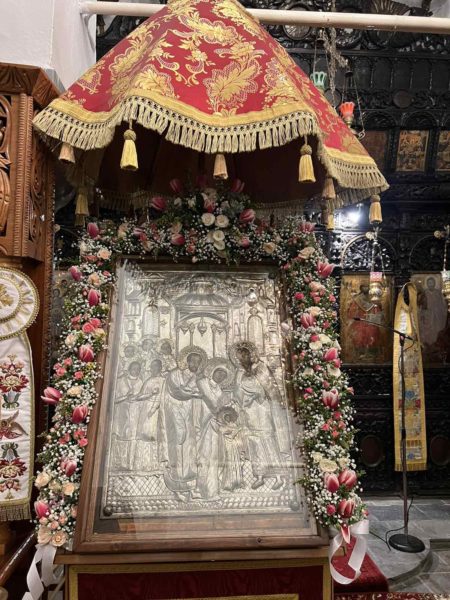 Το απόγευμα της Δευτέρας 20 Νοεμβρίου έλαβε χώρα με λαμπρότητα και θρησκευτική ευλάβεια η υποδοχή της ιστορικής Εικόνας Εισοδίων της Υπεραγίας Θεοτόκου και ο Πανηγυρικός Εσπερινός, προεξάρχοντος του Αρχιμ. Πορφυρίου Μπατσαρά, Ηγουμένου της Ιεράς Μονής Τιμίου Προδρόμου (Σκήτεως) Βεροίας.