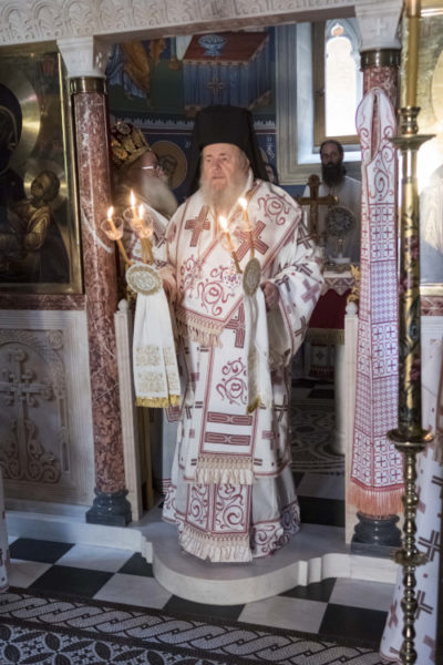 Στο Αρχιερατικό Συλλείτουργο, που τελέστηκε ανήμερα της εορτής, προεξήρχε ο Σεβασμιώτατος Μητροπολίτης Ιεραπύτνης και Σητείας κ. Κύριλλος, και συλλειτούργησαν ο Σεβασμιώτατος Μητροπολίτης Κυδωνίας και Αποκορώνου κ. Δαμασκηνός και ο Καθηγούμενος της Μονής, Θεοφιλέστατος Επίσκοπος Ευμενείας κ. Ειρηναίος, ο Καθηγούμενος της Ιεράς Πατριαρχικής και Σταυροπηγιακής Μονής Τοπλού, Αρχιμ. κ. Αμβρόσιος, εκπρόσωπος της Ιεράς Πατριαρχικής και Σταυροπηγιακής Μονής Οδηγητρίας Γωνιάς και κληρικοί από την Κρήτη.