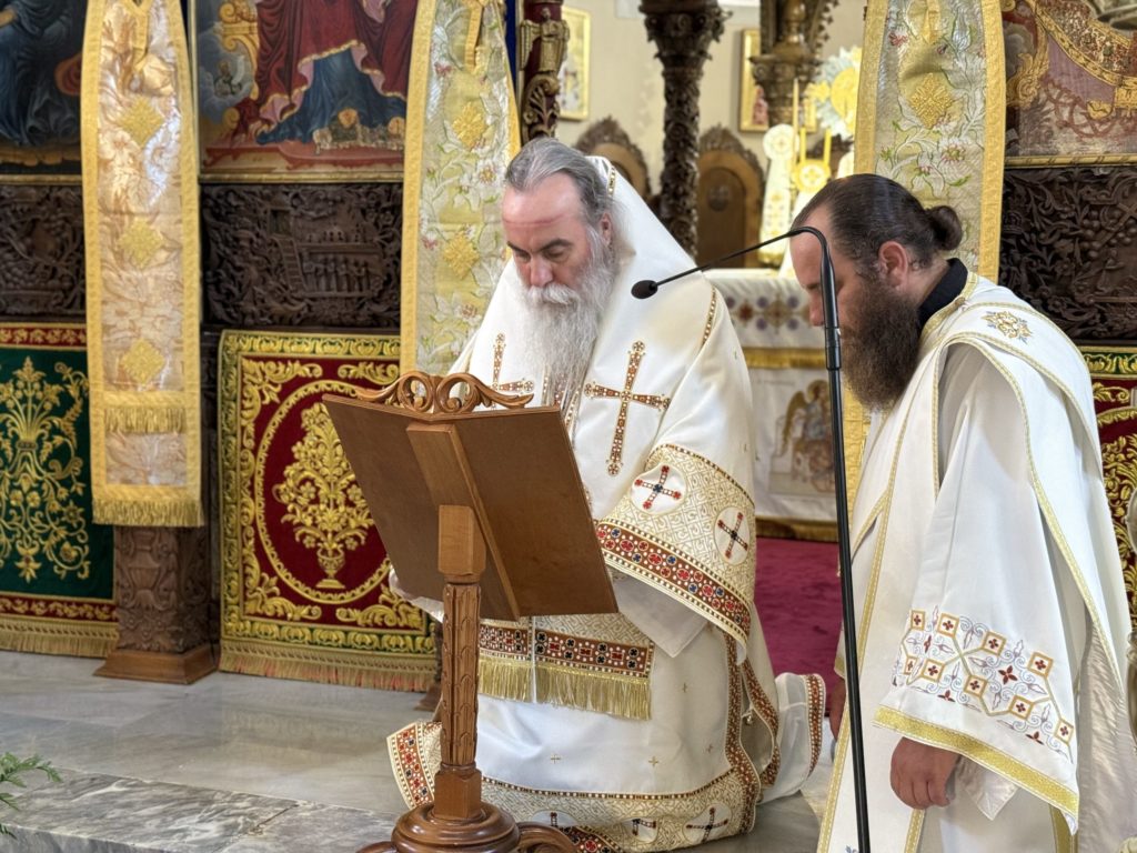 Της πανηγυρικής Αρχιερατικής Θείας Λειτουργίας και της ακολουθίας του Εσπερινού, κατά την οποία αναγιγνώσκονται οι ευχές της γονυκλυσίας, προεξήρχε ο Σεβασμιώτατος Μητροπολίτης Κισάμου και Σελίνου και Τοποτηρητής της Μητροπόλεως Κυδωνίας και Αποκορώνου κ. Αμφιλόχιος, ενώ έλαβαν μέρος, ο Παν/τος Αρχιμ. του Οικουμενικού Θρόνου και Καθηγούμενος της Ιεράς Πατριαρχικής και Σταυροπηγιακής Μονής Αγίας Τρίαδος των Τζαγκαρόλων Αμφιλόχιος Παπαγιαννάκης και πλήθος Κληρικών της Μητροπόλεως Κυδωνίας.