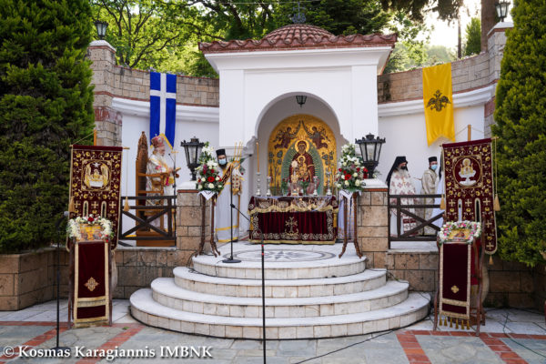Φέτος, λόγω των περιοριστικών μέτρων οι Ιερές Πανηγυρικές Ακολουθίες τελούνται στον αύλειο χώρο της Ιεράς Μονής έμπροσθεν του θαυματουργού Αγιάσματος.