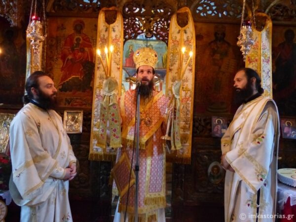 Την παραμονή της εορτής τελέστηκε αρχικά ο Αγιασμός στο προαύλιο της Μονής και εν συνεχεία ο Μέγας Πανηγυρικός Εσπερινός χοροστατούντος του Μητροπολίτου Καστορίας κ. Σεραφείμ και με την παρουσία πλειάδος Ιερέων και πιστού λαού του Θεού. . Στο τέλος του Εσπερινού εν πομπή άπαντες ανήλθαν στο Καμπαναριό της Μονής όπου τελέστηκε η Αρτοκλασία και ο Σεβασμιώτατος διακόνησε το θείο λόγο, μιλώντας για την κοινωνικότητα των Αγίων, μια ξεχασμένη αρετή των ημερών μας, η απώλεια της οποίας οδηγεί στα συχνά φαινόμενα μοναξιάς στη σύγχρονη κοινωνία.