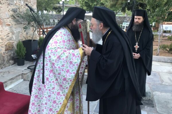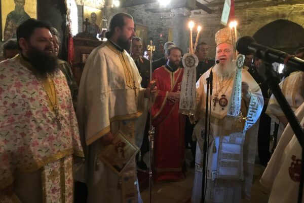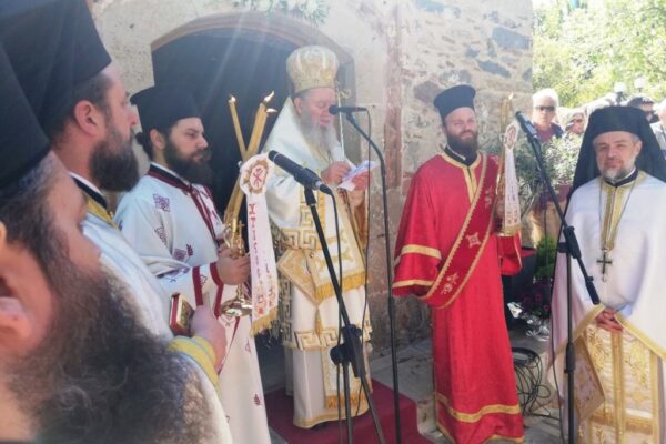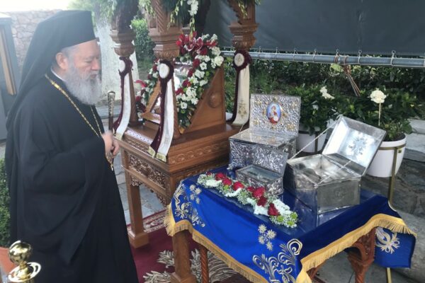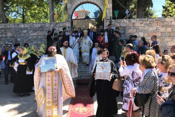 Στον Μεγάλο Πανηγυρικό Εσπερινό της παραμονής προεξήρχε και κήρυξε τον θείο λόγο ο Αρχιμ. Τιμόθεος Μπαϊμπάκης, Ιεροκήρυξ της Ιεράς Μητροπόλεως και αδελφός της Ιεράς Μονής, συμμετεχόντων και πατέρων – αδελφών της Ιεράς Μονής, ενώ ανήμερα χοροστάτησε στον Όρθρο και προεξήρχε της Θείας Λειτουργίας ο Σεβασμιώτατος, συλλειτουργούντων των αδελφών της Ι. Μονής Αρχιμ. Φιλοθέου Θεοχάρη, Αρχιγραμματεώς της Ι. Συνόδου και Ιεροκήρυκος της Ι. Μητροπόλεως, Αρχιμ. Νικηφόρου Ευσταθίου Γενικού Αρχιερατικού Επιτρόπου, του Ηγουμένου Αρχιμ. Χριστοδούλου Μάνια, του Αρχιμ. Χριστοφόρου Παπαθανασίου, Οικονόμου της Ι. Μονής και των Διακ. Νικολάου Πριμηκυρίου και Ευγενίου Τσάλλα, συμπροσευχομένου και του Συγκέλ. Πορφυρίου Γερμανού, ενώ την ιερά Υμνωδία διηκόνησε εξαιρετικά Χορός μαθητών της Σχολής Βυζαντινής Μουσικής της Ιεράς Μητροπόλεως, υπό την διεύθυνση του κ. Στυλιανού Μπενή.