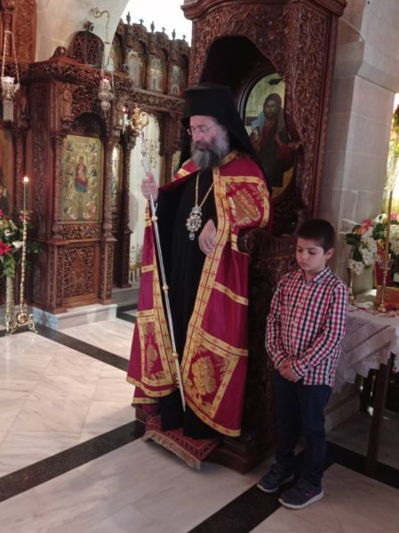 Ανήμερα της εορτής, Πέμπτη 5 Μαΐου 2022, τελέσθηκε Δισαρχιερατική Θεία Λειτουργία, στην οποία προεξήρχε ο Σεβ. Μητροπολίτης Κισάμου και Σελίνου κ. Αμφιλόχιος, κατόπιν προσκλήσεως του Σεβ. Μητροπολίτου μας.