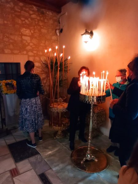 Μετά το πέρας της Θείας Λειτουργίας, ο Σεβ. Μητροπολίτης Κισάμου και Σελίνου κ. Αμφιλόχιος ανέγνωσε Ιερό Τρισάγιο επί του τάφου του αοιδίμου Μητροπολίτου Ρεθύμνης και Αυλοποτάμου κυρού Θεοδώρου, του κτήτορος και ευεργέτου της Ιεράς Μονής Αγίας Ειρήνης.