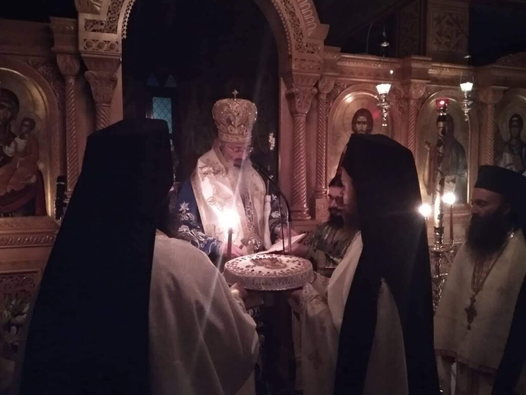 Το βράδυ της Τετάρτης 25 Σεπτεμβρίου στο Καθολικό της πανηγυρίζουσας Ιεράς Μονής τελέσθηκε Ιερά Αγρυπνία, με πανηγυρικό Εσπερινό, Λιτή, Αρτοκλασία, Όρθρο και Αρχιερατική Θεία Λειτουργία από τον Μητροπολίτη μας κ. Άνθιμο. Η Ιερά Αγρυπνία κράτησε από τις 7.00 το απόγευμα μέχρι λίγα λεπτά μετά τα μεσάνυχτα, ενώ ευλογήθηκαν τα κόλλυβα του Αγίου και παρετέθη κέρασμα σε όσους παρακολούθησαν την Αγρυπνία.