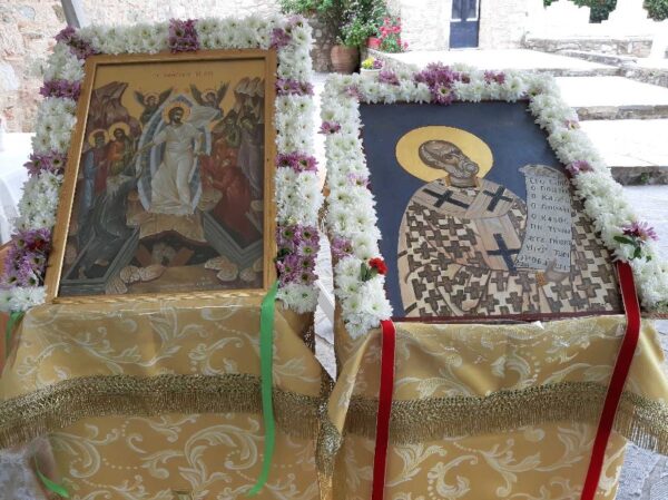 Την κυριώνυμη ημέρα τελέσθηκε ο Όρθρος και η Πανηγυρική Θεία Λειτουργία με συλλειτουργούς τον Πρωτοπρ. Θεοφάνη Παπαγεωργίου-Εφημέριο του Ενοριακού Ιερού Ναού Αγίου Νικολάου Ερετρίας και τον Σακελλάριο Δημήτριο Αργύρη-Εφημέριο του Ενοριακού Ιερού Ναού Αγίου Νικολάου Άνω Βάθειας, παρουσία της Καθηγουμένης της Ιεράς Μονής Μακαρίας Μοναχής και της συνοδείας της.