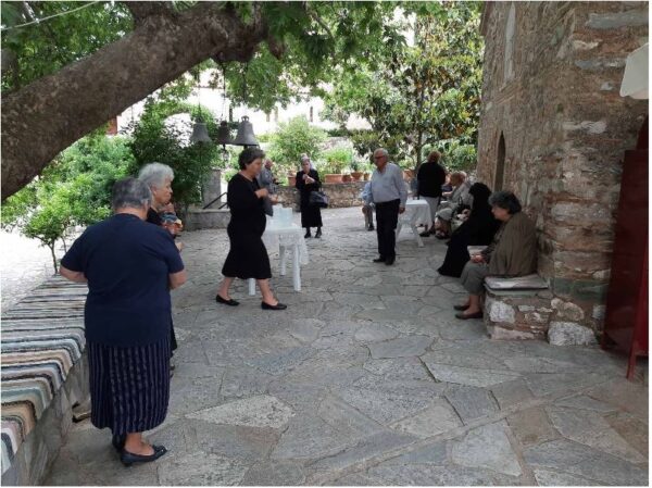 Κατά τη διάρκεια των Ιερών Ακολουθιών, του Εσπερινού, του Όρθρου και της Θείας Λειτουργίας, οι προσελθόντες πιστοί συμμετείχαν στα τελούμενα, όντας έξωθεν του Καθολικού της Ι. Μονής, στον αύλειο χώρου, λόγω της στενότητας του Ι. Ναού και της τήρησης των υγειονομικών μέτρων.