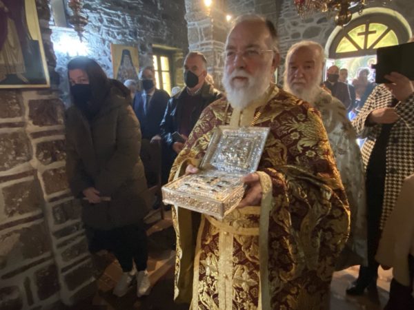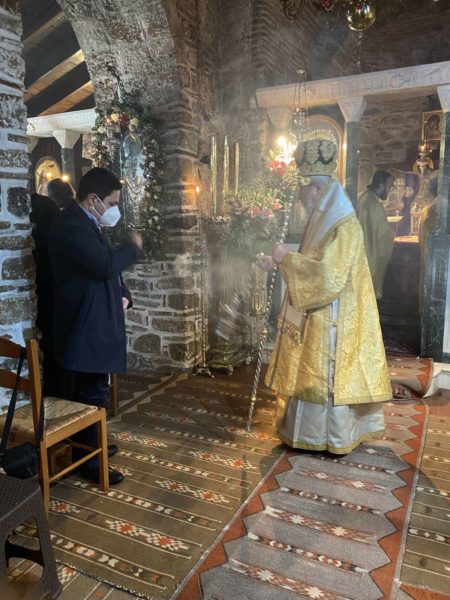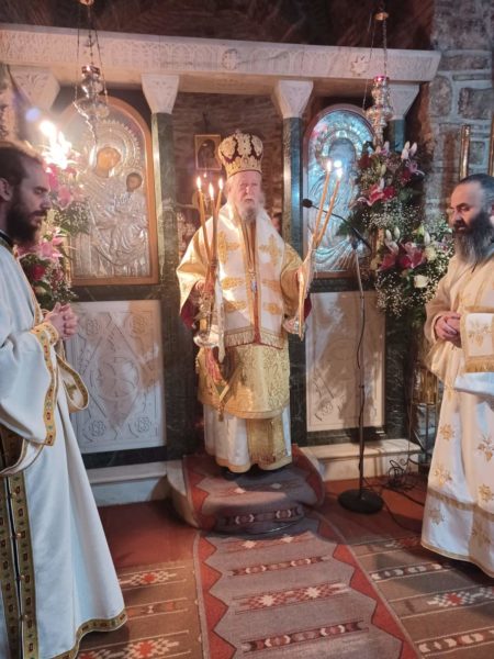 Τον θείο λόγο κήρυξε ο Σεβασμιώτατος κ. Σεραφείμ και ευχήθηκε προς όλους πιστούς που προσήλθαν να τιμήσουν την εορτή εσπέρας και ανήμερα της εορτής.